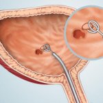 - برداشت سرطان از طریق مجرا (TUR) : که به روش اندوسکوپیک و با دستگاهی بروش بسته انجام می شود . این روش با بی حسی و سرپایی انجام می شود .ابزار (resectoscope) با یک حلقه سیم کوچک است که از طریق مجرای ادرار به مثانه وارد می شود حلقه با برش یا سوزش و با جریان الکتریکی سبب حذف تومور و اجازه می دهد تا آن از مثانه خارج شود.